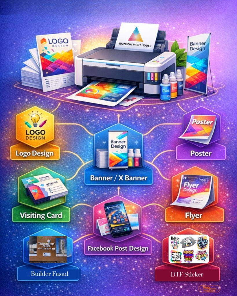 Rainbow Printing House is your trusted partner for creative design and high-quality printing solutions. We help businesses, startups, and individuals turn ideas into impactful visual communication.